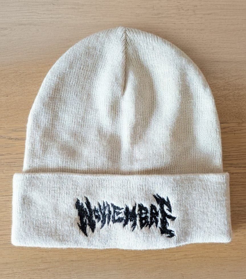 Con «NOVIEMBRE» bordado en la frente (aviso, se ve al revés cuando se mira en el espejo).